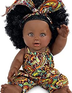 Muñeca Negra bebé, muñeca Negra bebé 20cm muñeca Africana niña Negra bebé simulación Realista Juguete con Vestido Verde Rosa Rosa para niños Regalos …